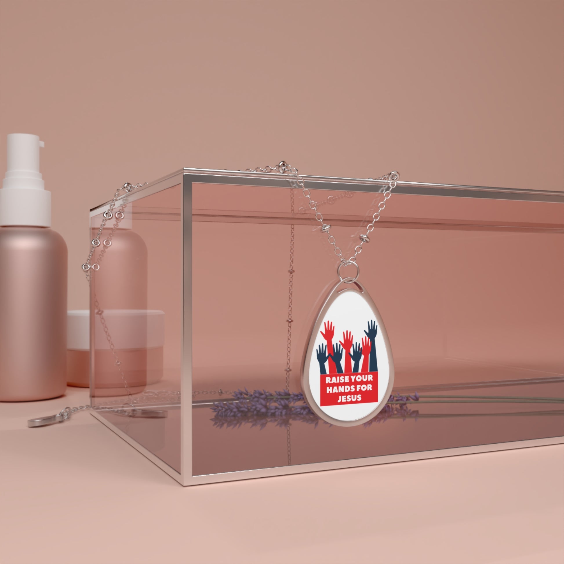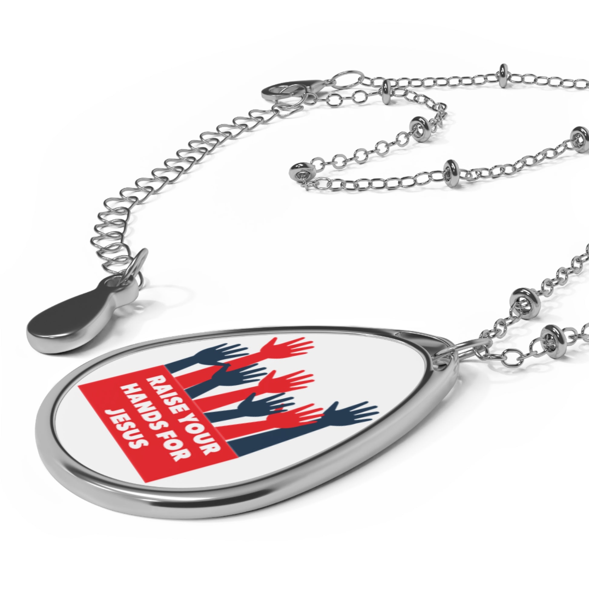 Faith-Inspired Oval Necklace | Raise Your Hands for Jesus Jewelry, Christian Gift, Spiritual Pendant, Religious Accessory